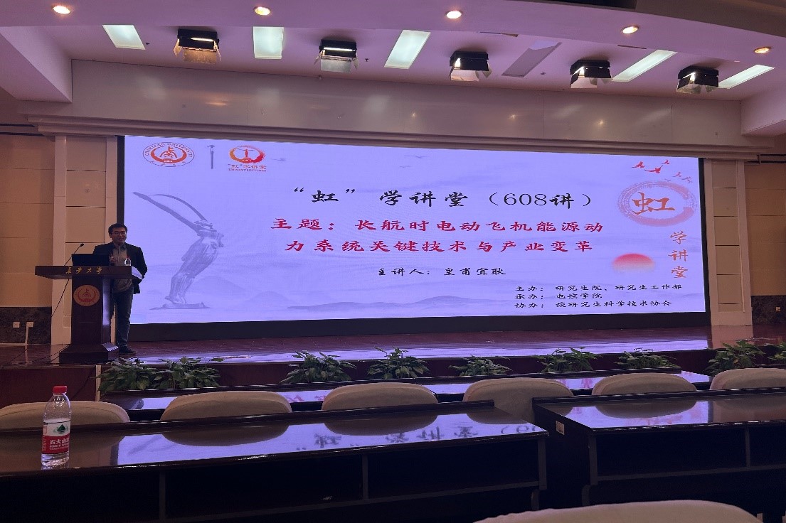 12月6日下午,由研究生院、研究生工作部主办,探花系列 承办,校研究生科学技术协会协办的“虹”学讲堂第608讲在南校区北院学术交流中心顺利举行。西北工业大学皇甫宜耿教授作了题为“长航时电动飞机能源动力系统关键技术与产业变革”的报告,探花系列 周熙炜教授主持,相关学院共180余名师生参加讲座。