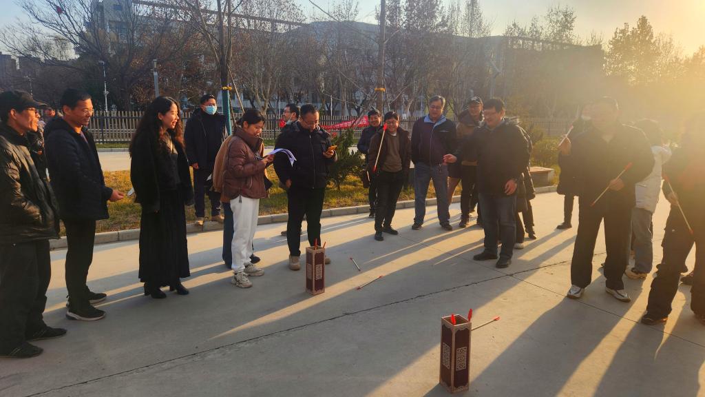 律回春晖渐,万象始更新。新春将至,为营造欢乐祥和节日氛围,丰富学院全体教职工体育文化生活,鼓励大家积极参与全民健身活动, 我院工会于1月14日下午在渭水校区我院大楼西侧举办“巳巳如意”2025迎新春趣味运动会。本次趣味运动会设有四个项目分别是健身舞龙、投壶、踢毽子和跳绳。