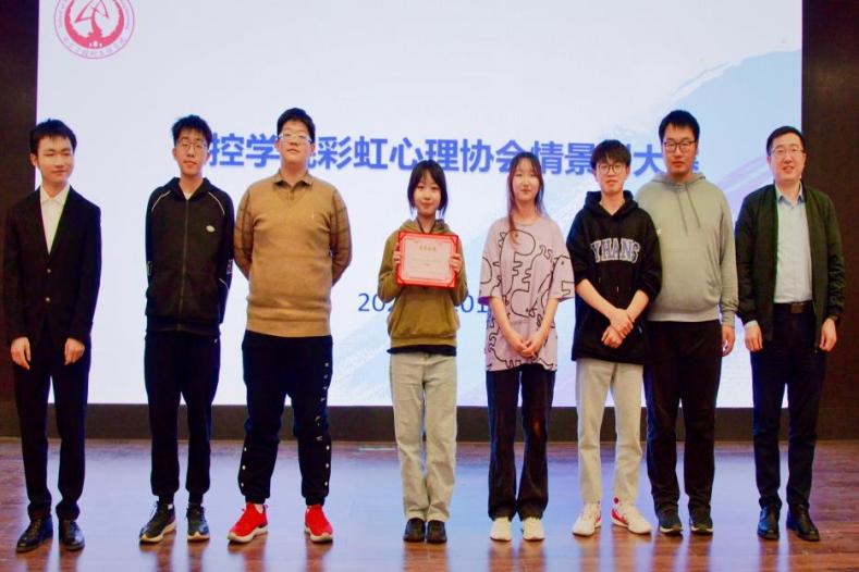 心理剧创演大赛在长安文化艺术中心三楼多功能厅举办。学院党委副书记李阳、学校心理中心教师霍倩倩、学工办主任高婷以及彩虹心理协会指导教师张馨月,辅导员王博、李慧,彩虹心理协会主席担任评委。