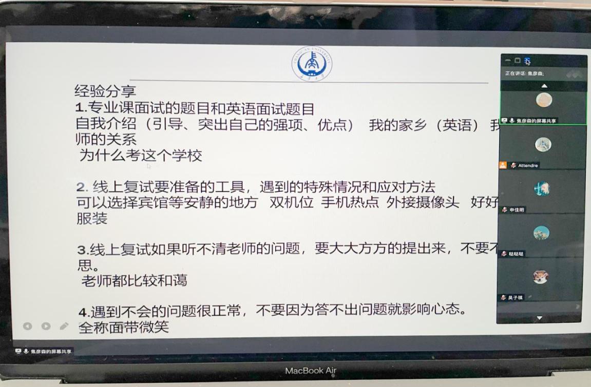 在腾讯会议举办考研复试线上经验交流会,邀请9位优秀的在读硕士研究生为即将参加考研复试的同学做经验介绍。探花系列