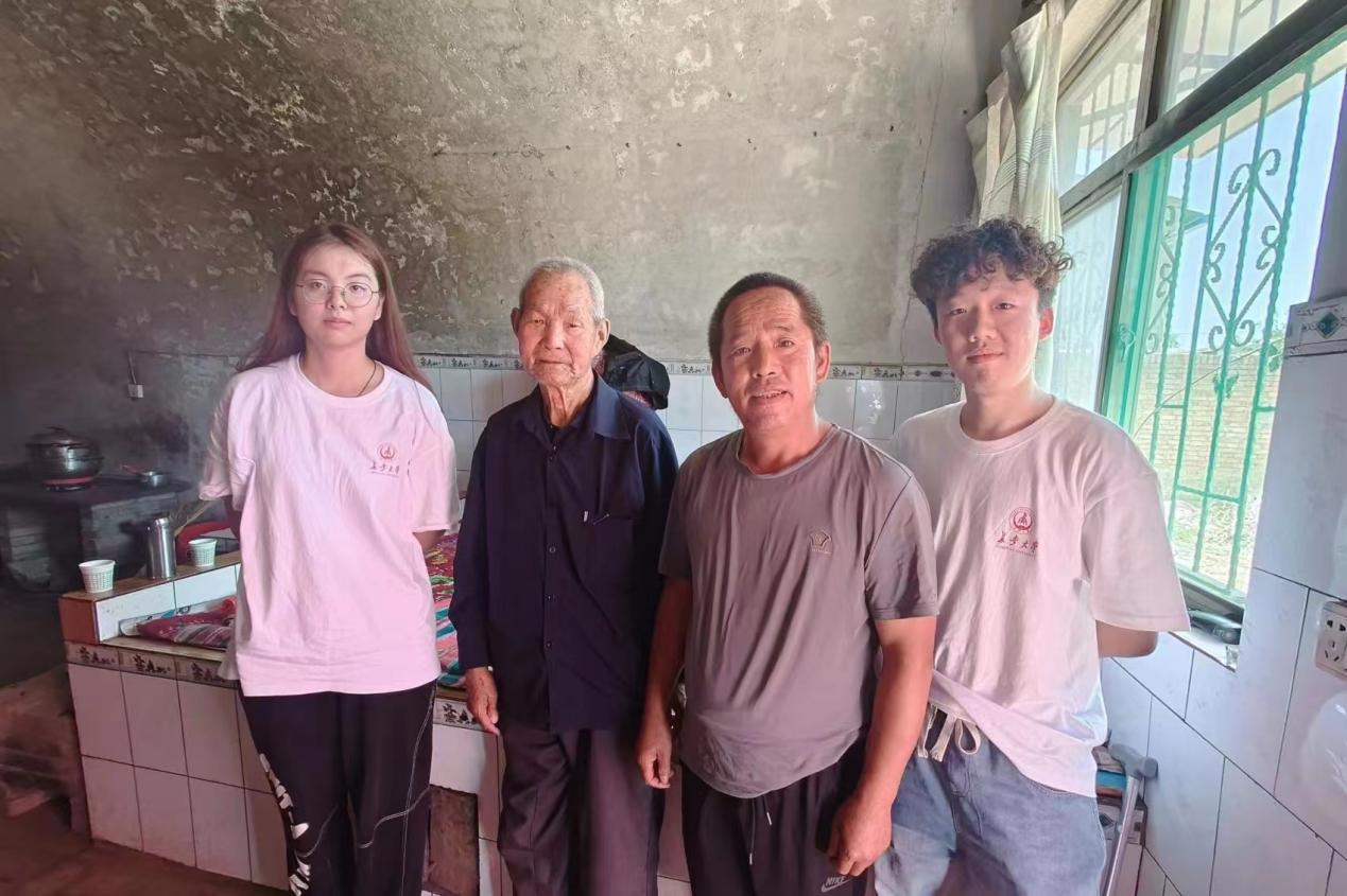 实践队员与杨来成老人合影