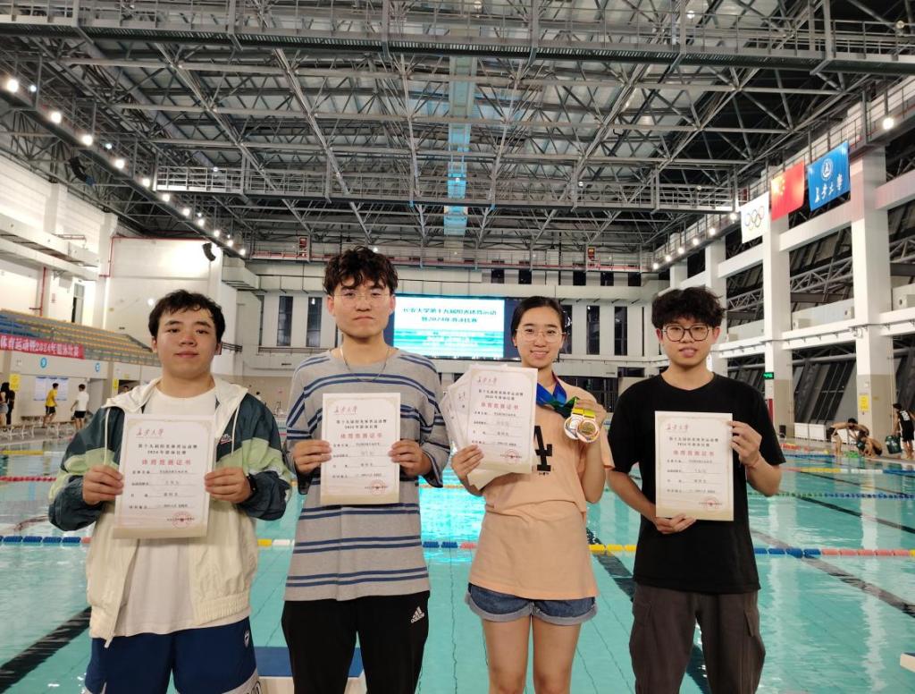 的选手们展现出了卓越的竞技状态。他们配合默契,动作流畅,每一次交接棒都准确无误。这场接力赛不仅展示了运动员们的实力,也体现了团队合作的力量。王欣芮、陶艺铭、李斯特、沈博涛四位同学代表学院在本项目中获得第四名的优秀成绩。