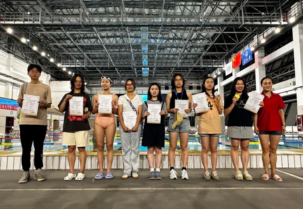 在持板打腿25米紧张热烈的氛围下,选手们努力拼搏,力求取得佳绩。她们手持板面,以迅猛的打腿动作奋力向前。水花飞溅,青春激扬,选手们昂扬的精神风貌与积极的竞技态度让全体观众为之喝彩。在本项目中我院王欣芮同学取得第二名的佳绩。