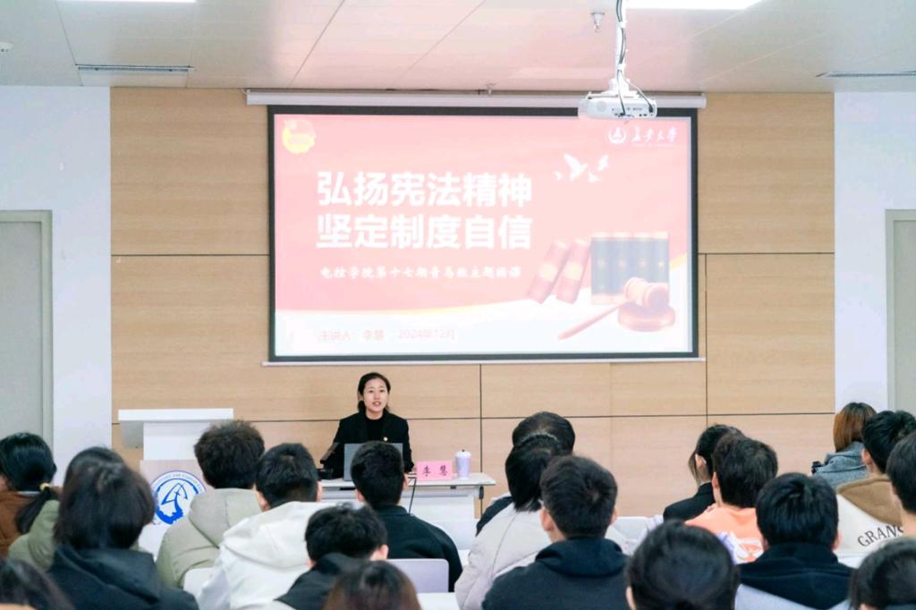 第十七期青年马克思主义者培养工程(青马班)于12月5日下午在北校区明德园智通大厦216会议室开展了“弘扬宪法精神·坚定制度自信”主题团课。此次团课由院团委书记李慧主讲,第十七期青马班全体学员参加。