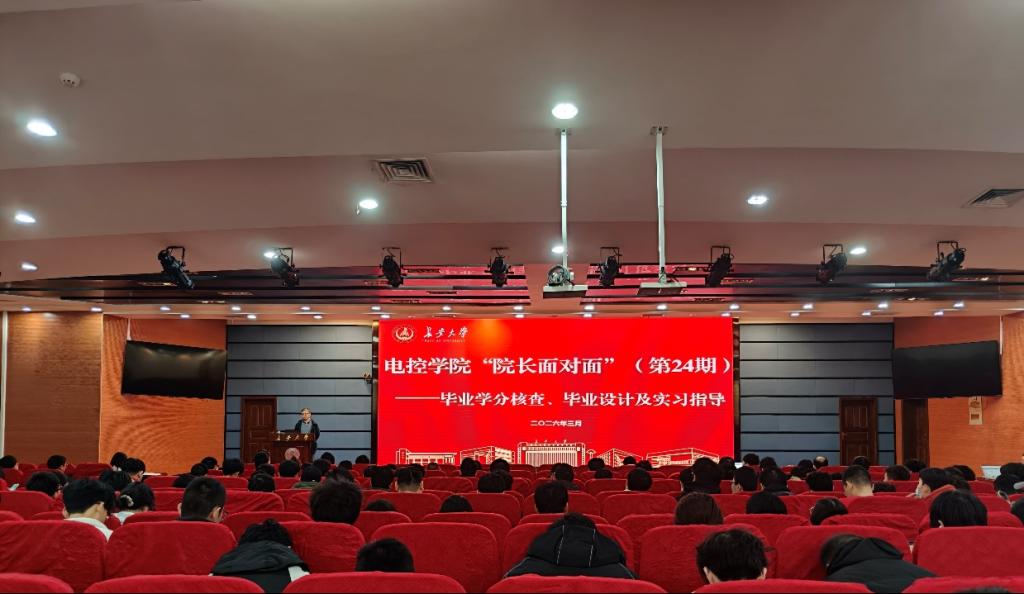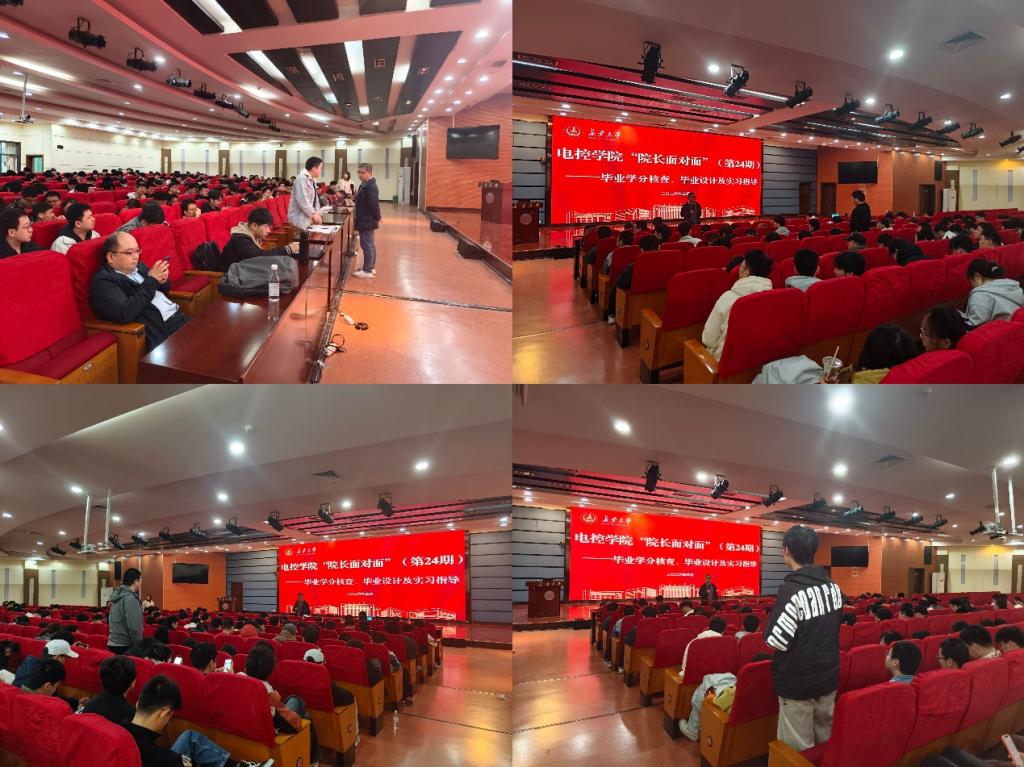 在渭水校区北辰楼会议中心二层报告厅举办“院长面对面”(第24期)专题讲座。本次讲座以“毕业学分核查、毕业设计及实习指导”为主题,学院副院长龚贤武担任主讲,交通信息与控制工程系副主任钱超、教务老师楼静梅以及2022级全体本科毕业生参加。讲座由辅导员李慧主持。