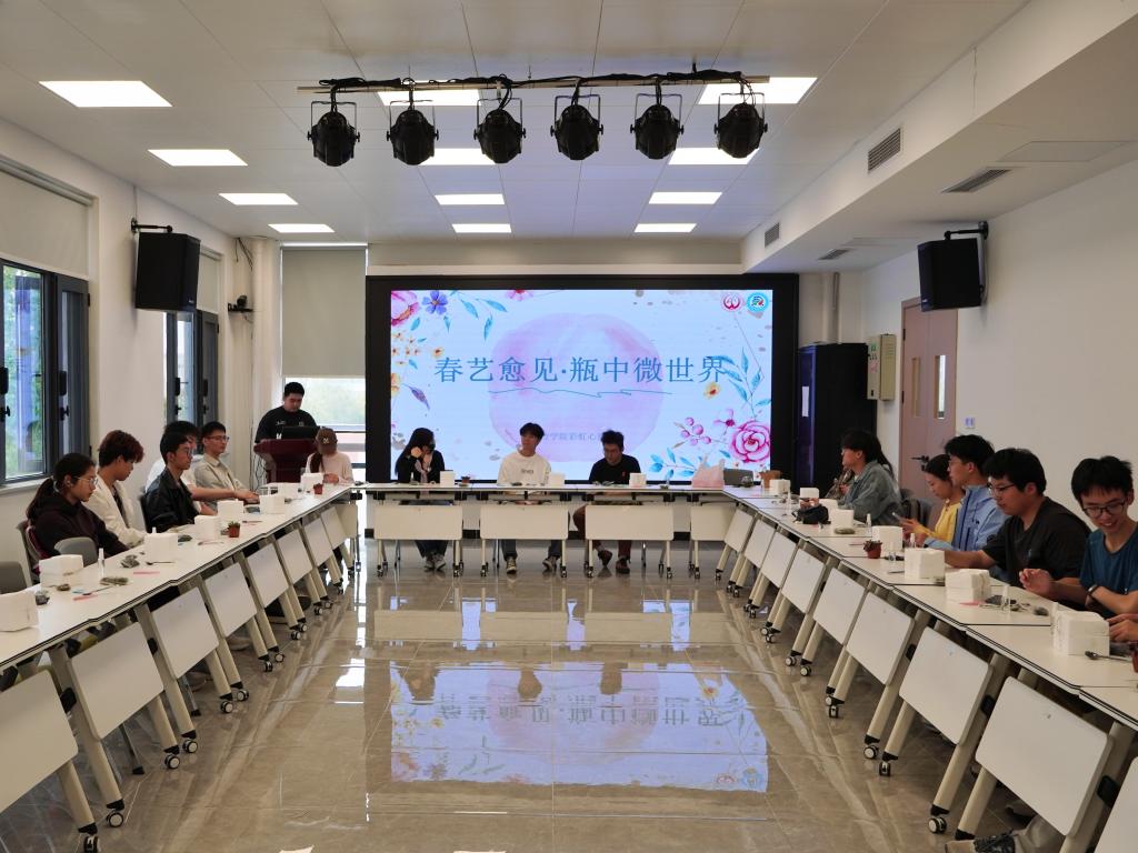 彩虹心理协会于鸿翔园学生社区多功能厅顺利开展“春艺愈见”表达性艺术疗愈系列工坊首场活动——“瓶中微世界”微景观生态瓶生命叙事工坊。本次活动由彩虹心理协会主席韩喆主持,覆盖本硕各年级学生。
