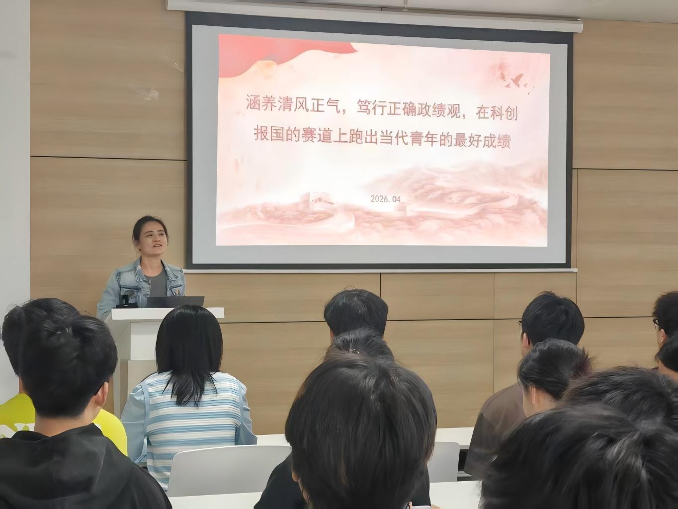 在北校区明德园智通大厦216室开展“涵养清风正气,笃行正确政绩观”专题党课。学院党委副书记高婷婷担任主讲人,科创领航本科生党支部书记李慧、副书记孙超、支部全体党员,以及学院各学生组织党员代表参会学习。