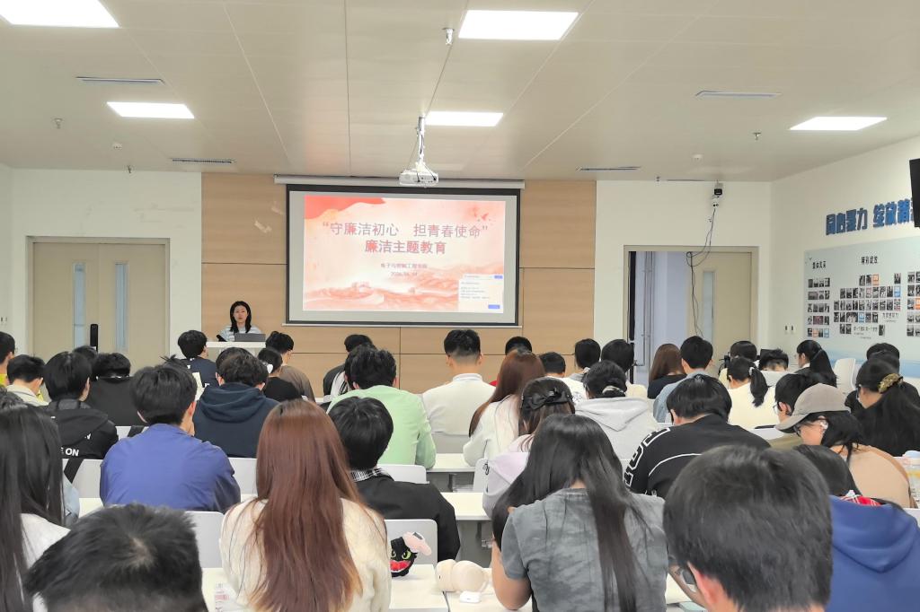 在北校区明德园智通大厦216室召开“守廉洁初心 担青春使命”廉洁主题教育大会暨树立和践行正确政绩观主题团课。学院团委书记李慧担任主讲,2025级本科生辅导员孙超,学院各团学组织学生骨干、团员代表参会学习。