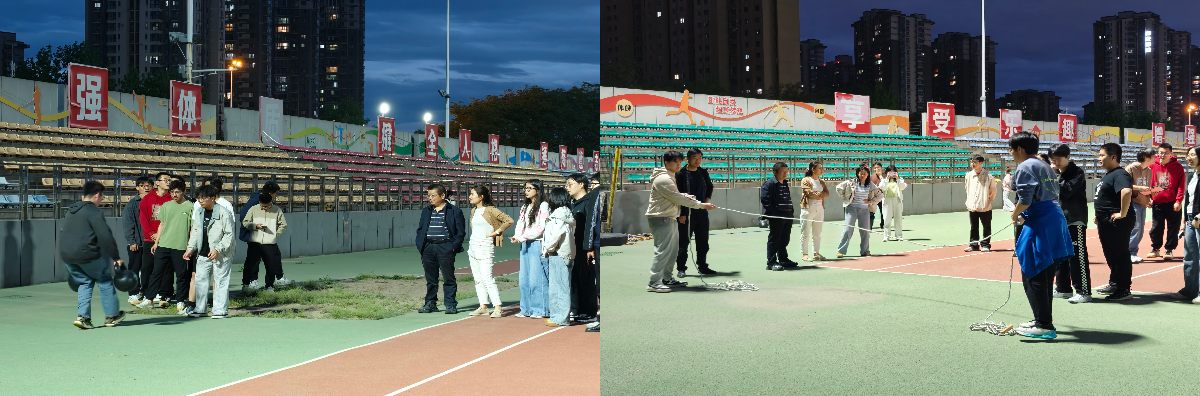 党委书记、院长闫茂德,院党委副书记高婷婷及全体辅导员来到北校区朝晖运动场慰问学院2026年春季运动会备赛运动员并指导训练。