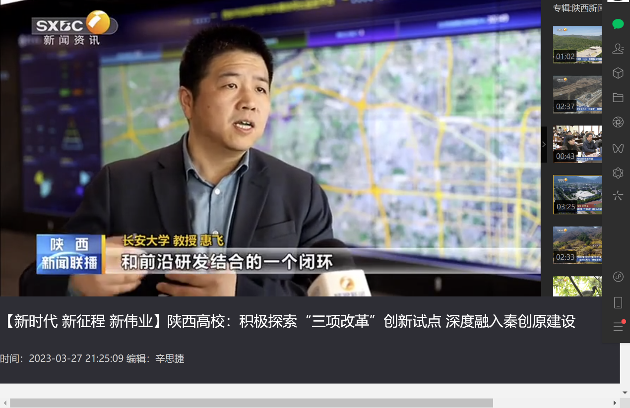 我院惠飞教授接受了《陕西新闻联播》记者采访,介绍了我校智能网联汽车测试团队取得的科研成果,以及在秦创原政策支持下,团队近几年科技成果落地应用和服务地方经济的情况。