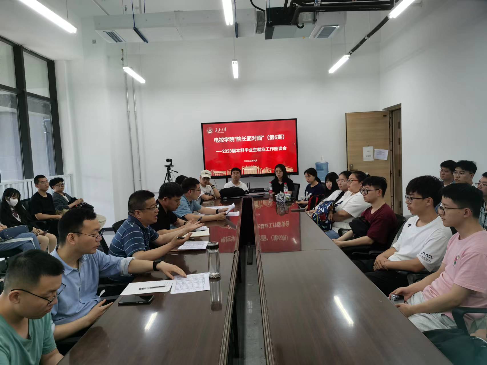 在学院会议室举行“院长面对面”(第6期)之2023届本科毕业生就业促进工作座谈会。院党委书记贺炳彦、院长闫茂德、院党委副书记李阳、自动化系副主任杨盼盼、毕业班辅导员王斌娟出席座谈会,31名2023届未就业毕业生代表参加座谈会。