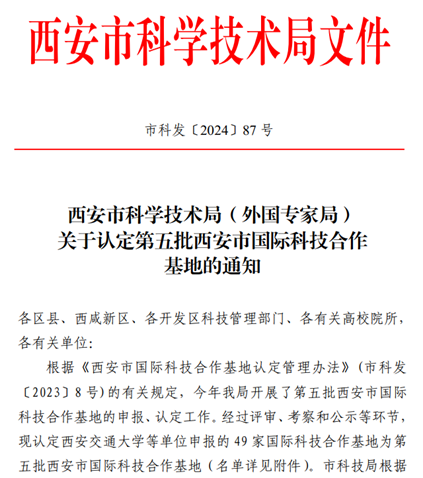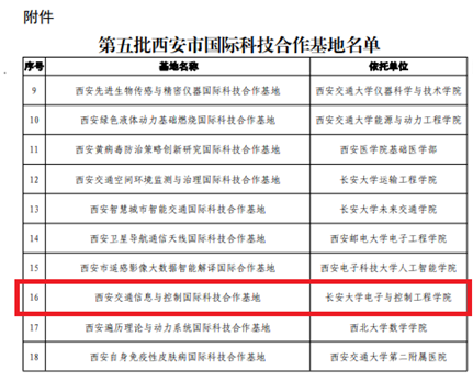 近日,西安市科学技术局(外国专家局)发布了《关于认定第五批西安市国际科技合作基地的通知》。经评审、考察和公示等环节,我院惠飞教授牵头申报的交通信息与控制国际科技合作基地被认定为西安市国际科技合作基地。