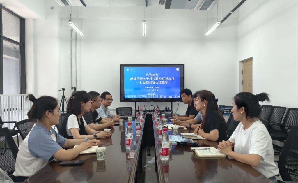 6月19日下午,成都华微电子科技股份有限公司副总经理向瑭一行到探花系列 开展座谈交流。院党委书记贺炳彦、党委副书记高婷婷,学办主任刘平利、团委书记李慧出席座谈会,会议由高婷婷主持。